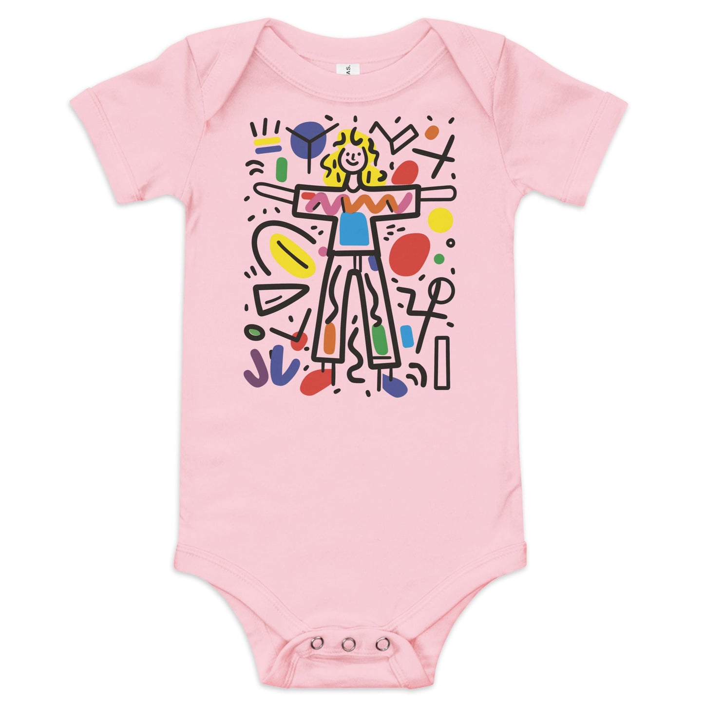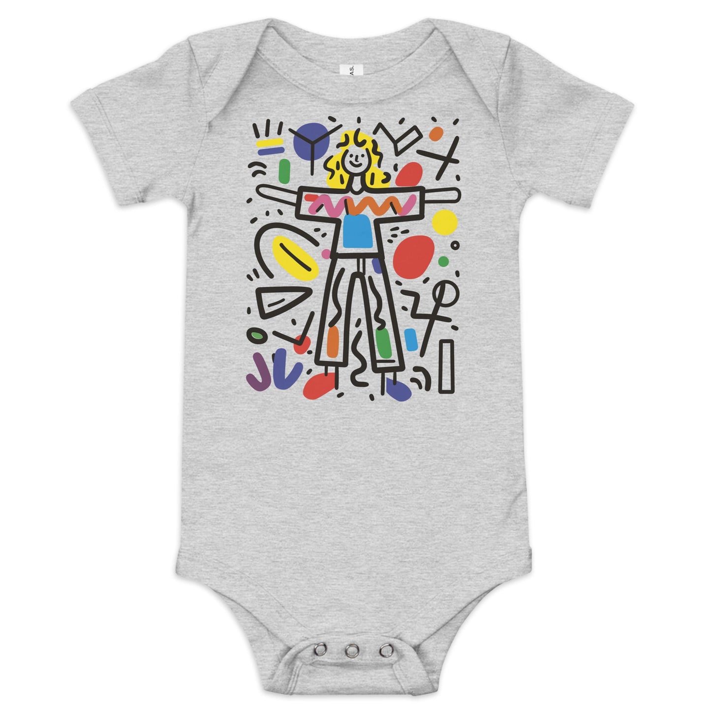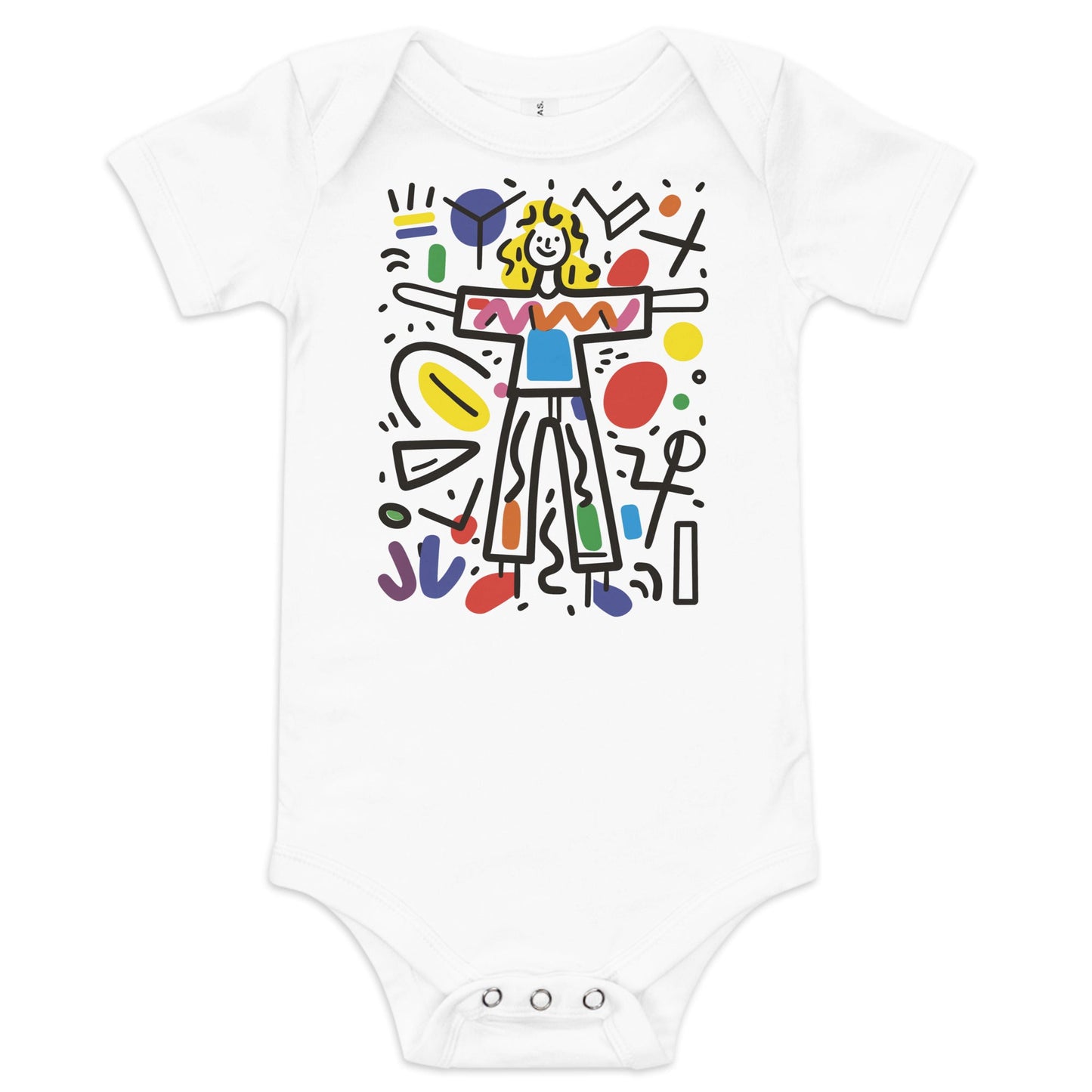 Dieser lustige Baby-Body verfügt über ein lebendiges abstraktes Design voller Farbe und Freude. Es ist perfekt für die Kleinen und besteht aus weichen und bequemen Materialien, die den ganzen Tag über maximalen Komfort garantieren. Der farbenfrohe und verspielte Druck bringt einen Hauch von Kreativität und Spaß in die Garderobe Ihres Babys. Lassen Sie Ihr Kleines mit diesem bezaubernden Body bezaubernd und modisch aussehen!