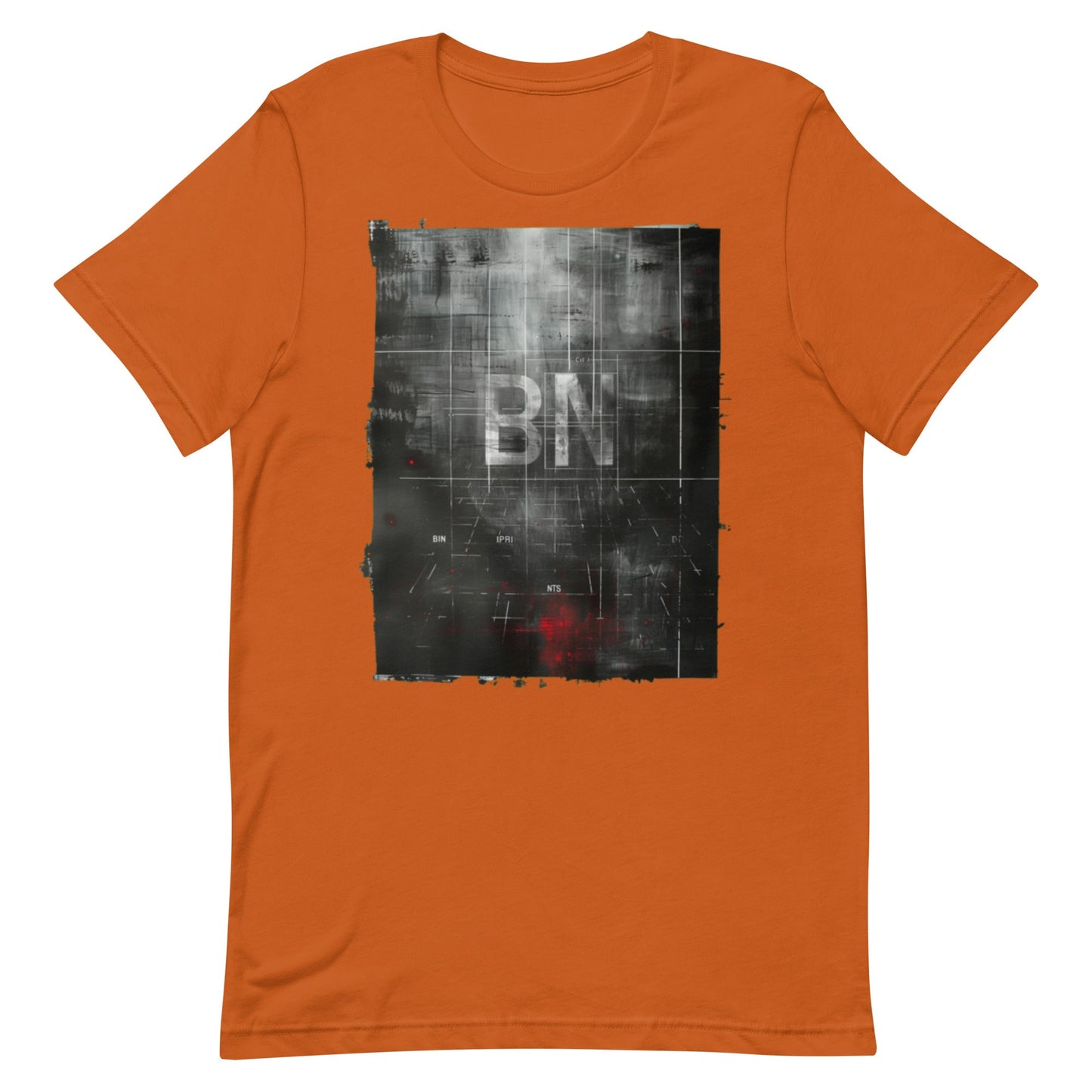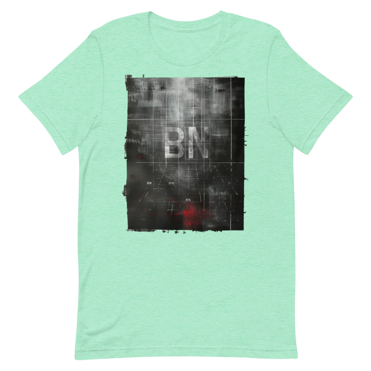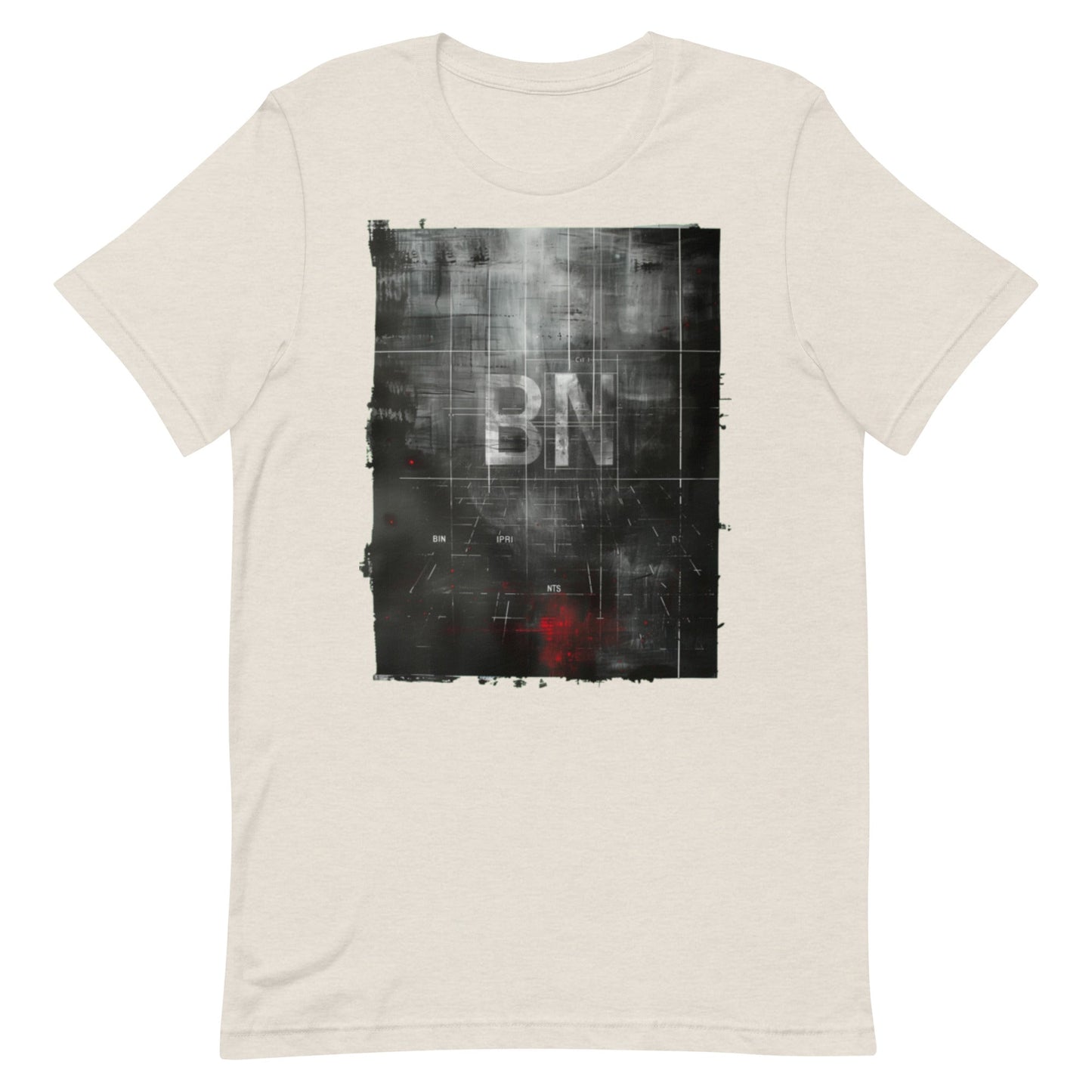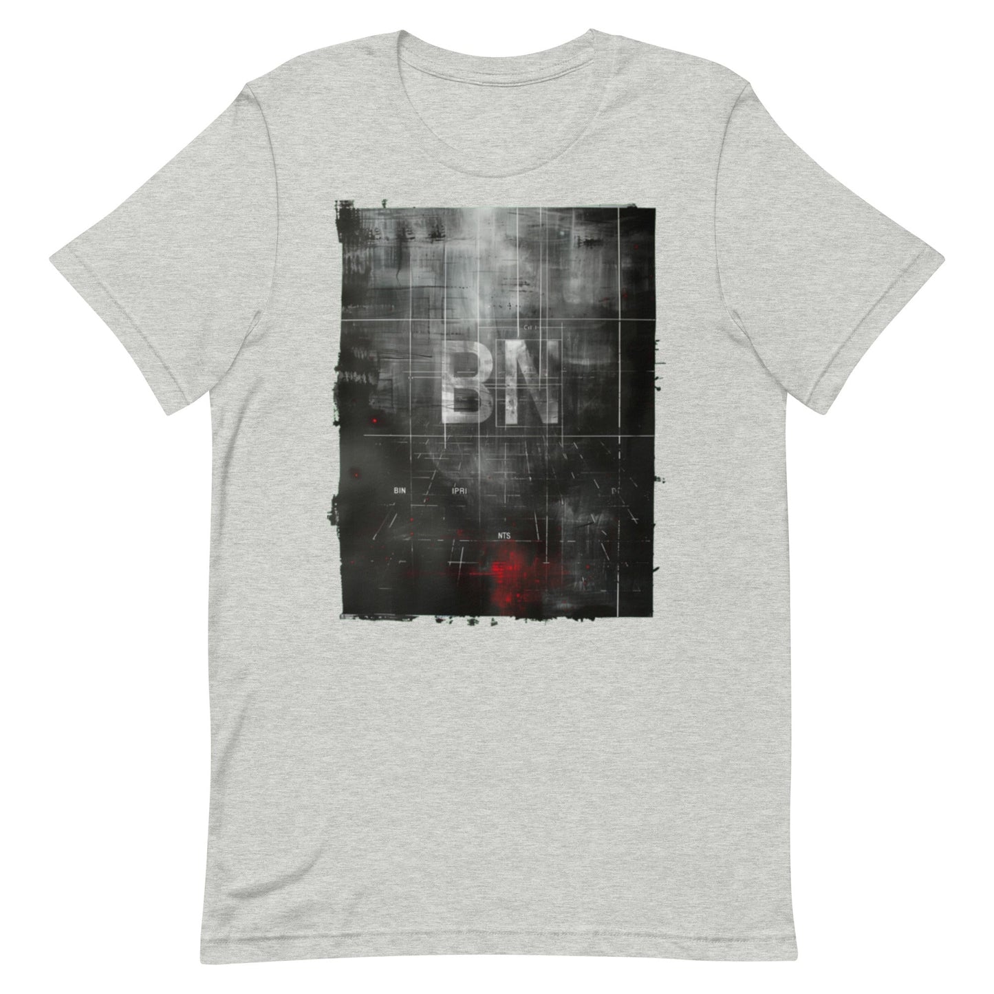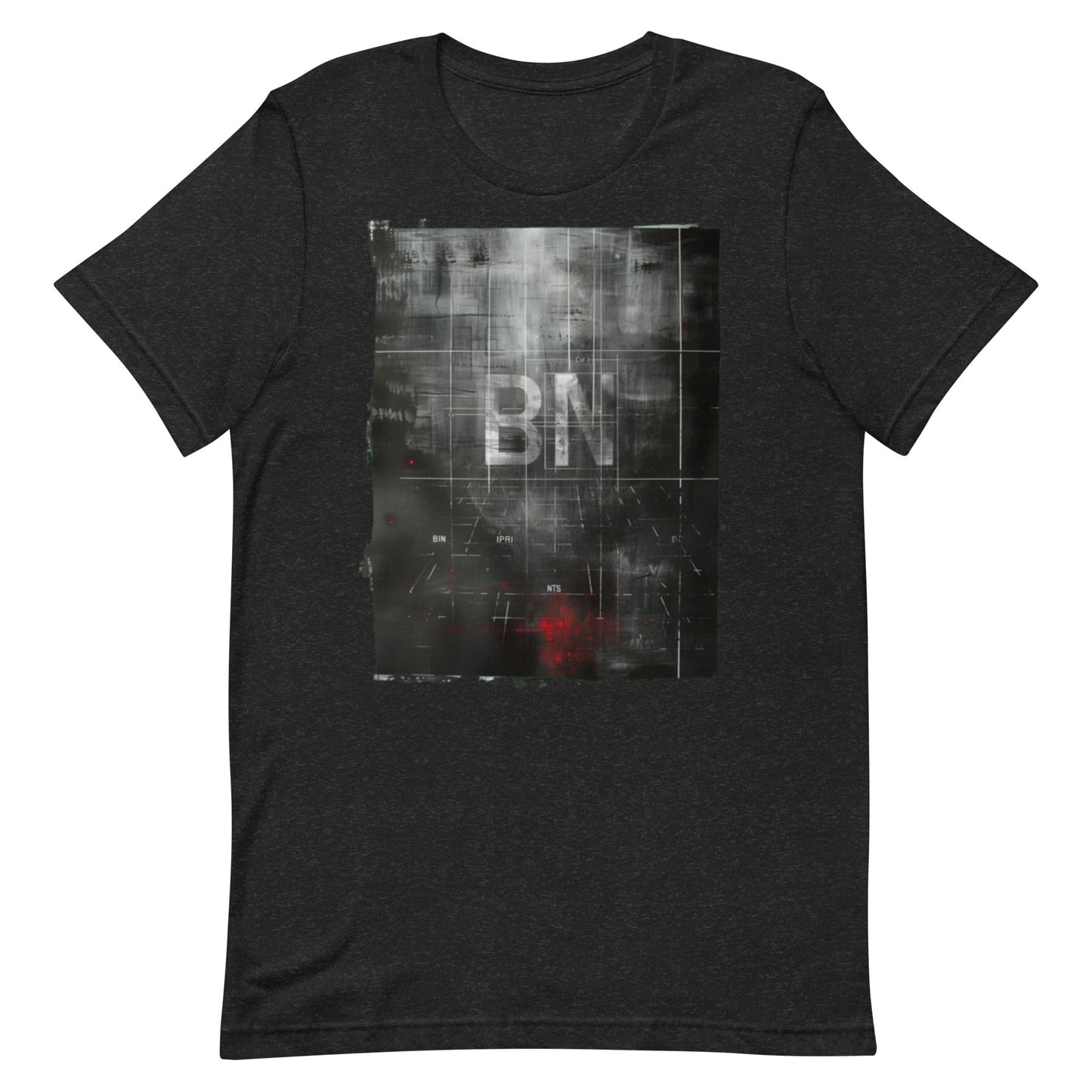 Zeigen Sie einen modernen, urbanen Stil mit diesem hochwertigen T-Shirt, verziert mit einem faszinierenden abstrakten Design mit den Buchstaben „BN“. Der Druck in dunklen Tönen und roten Details sorgt für einen Hauch von Geheimnis und Raffinesse, ideal für alle, die einen einzigartigen und modernen Look suchen. Dieses T-Shirt ist perfekt für jeden Anlass und vereint Komfort und künstlerisches Design. Fügen Sie dieses unverwechselbare Stück Ihrer Sammlung hinzu und stechen Sie mit einem mutigen und modernen Stil hervor!